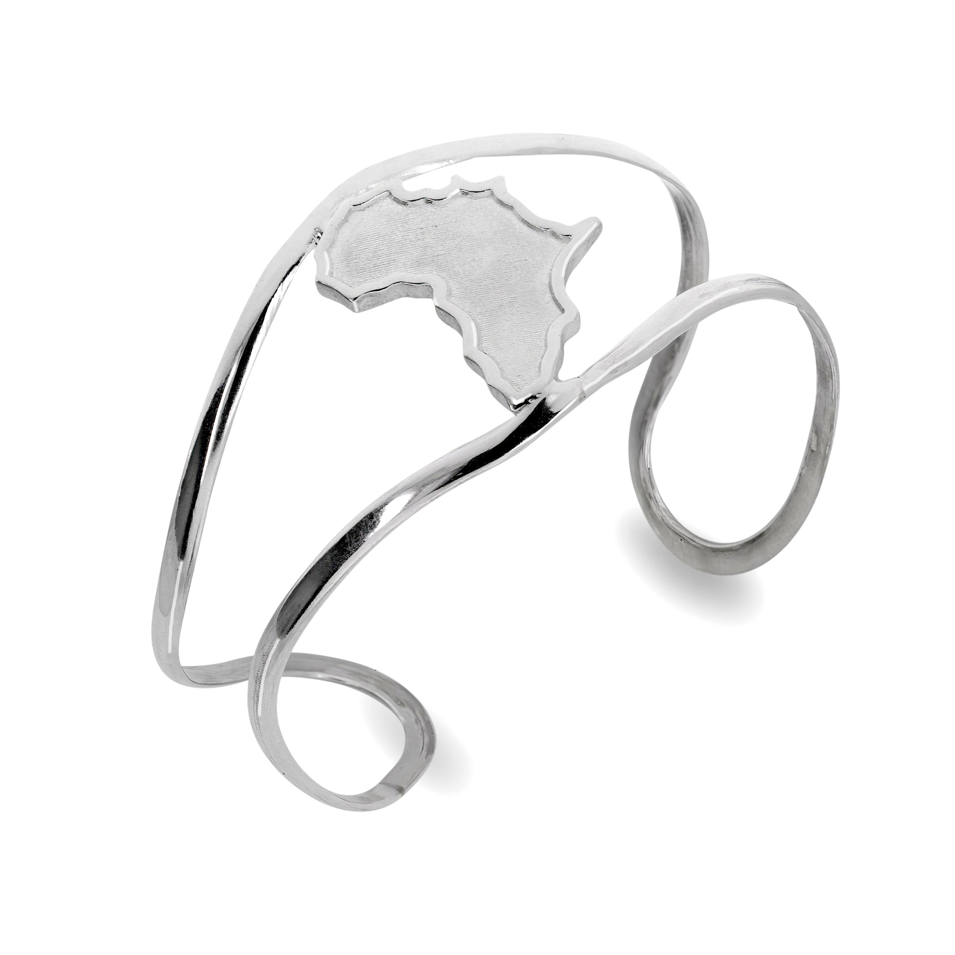 African Map 925 Sterling Silver Cuff Bracelet, Adjustable Bangle
