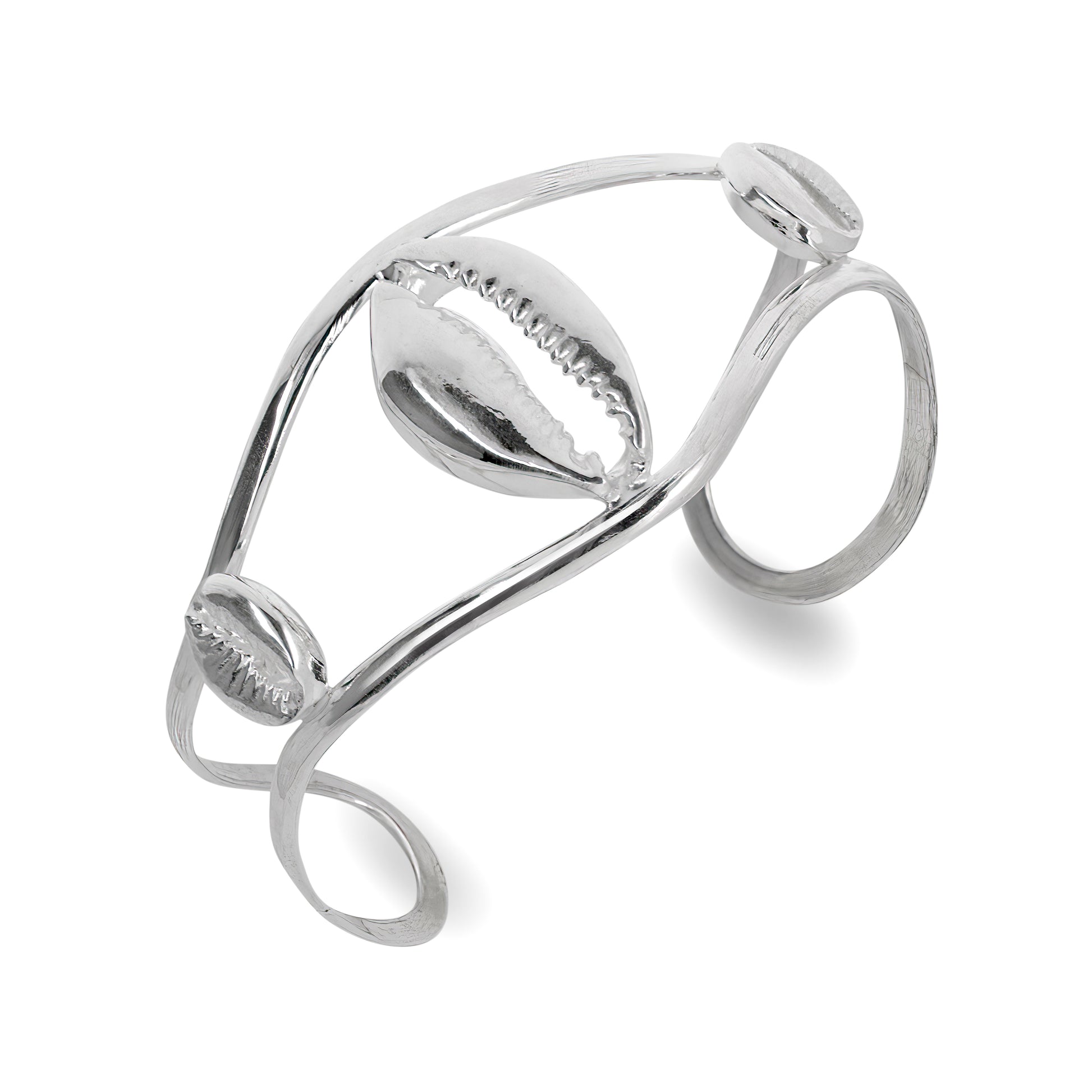Celebrate ocean-inspired elegance with this stunning handmade cuff bracelet crafted from solid 925 sterling silver. Featuring one large cowrie shell and two smaller cowrie shells on each side, this boho-chic bangle is both stylish and symbolic. Carefully handcrafted in Brooklyn, this piece adds a unique coastal touch to your jewelry collection.