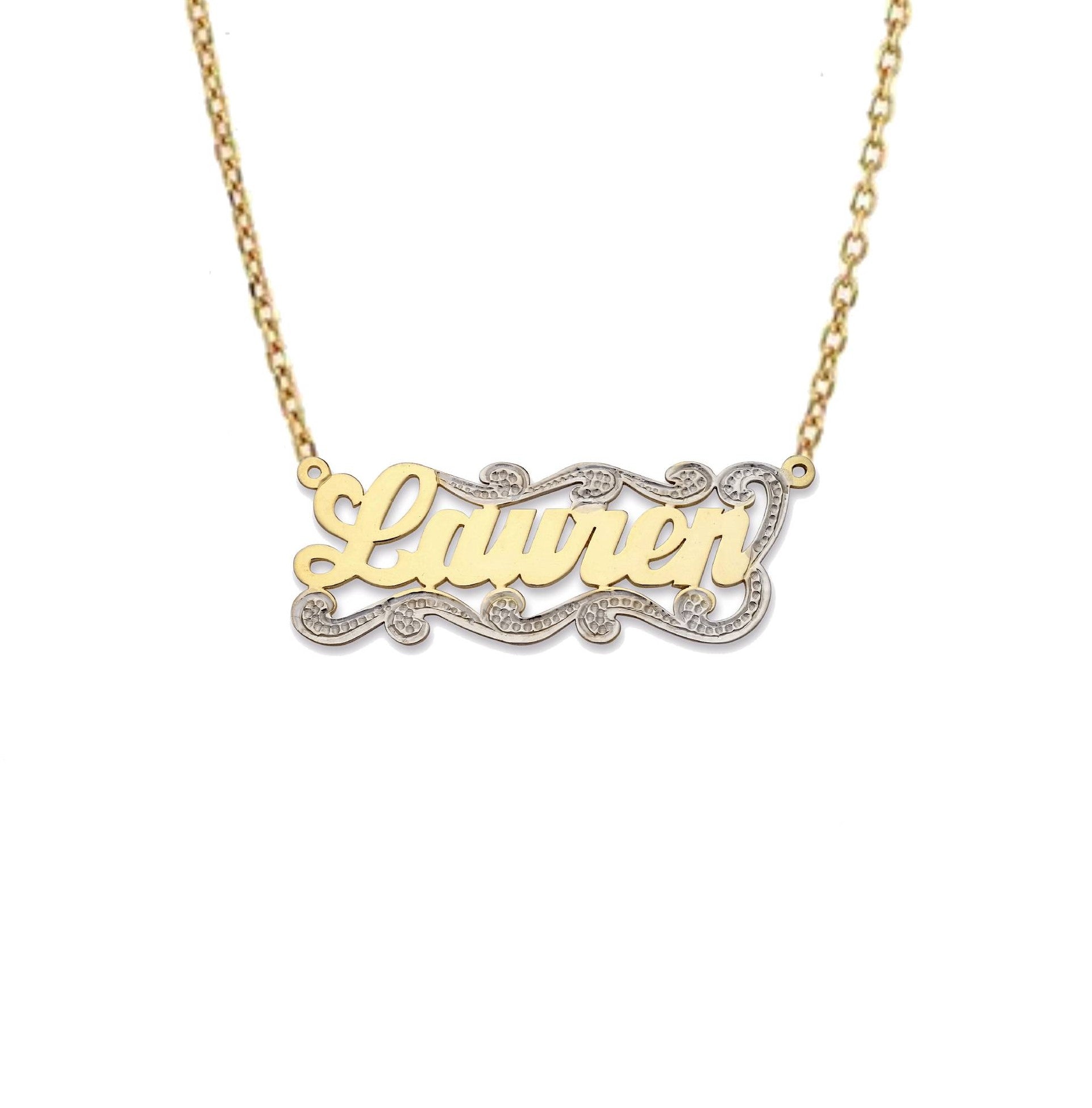 Better Jewelry Diamond Cut Script Single 14K Gold Nameplate Necklace