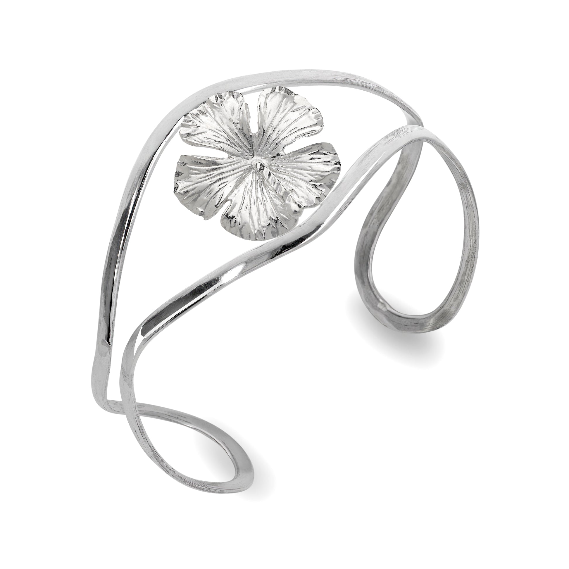 Flower Hibiscus 925 Sterling Silver Cuff Bracelet, Adjustable Bangle