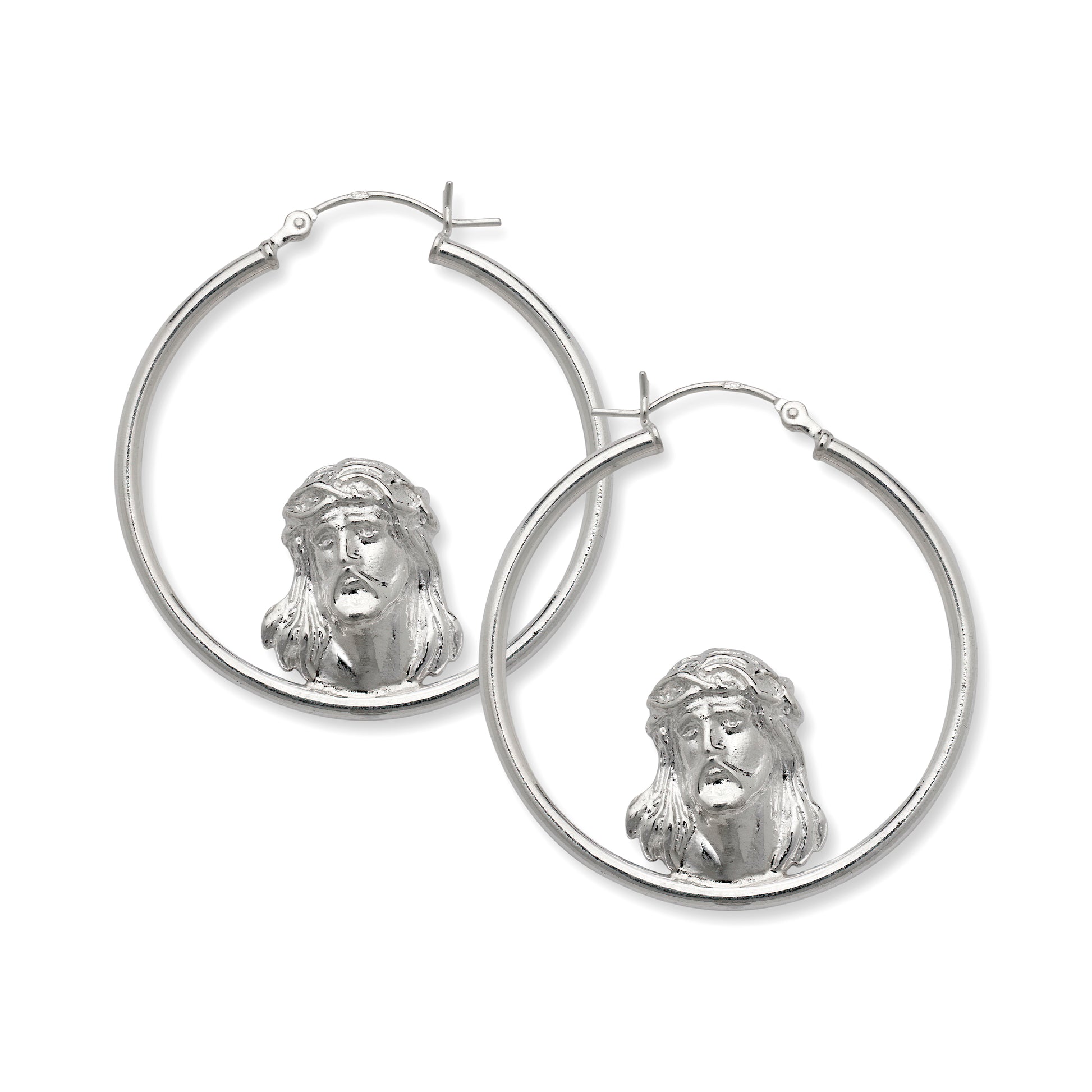 These 925 sterling silver Jesus Earrings Hoops. They are handmade in the USA and make a beautiful and meaningful addition to any jewelry collection.