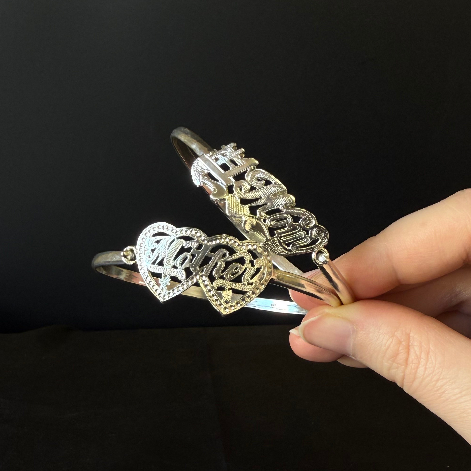 Mother .925 Sterling Silver Hook Bangle, 1 piece