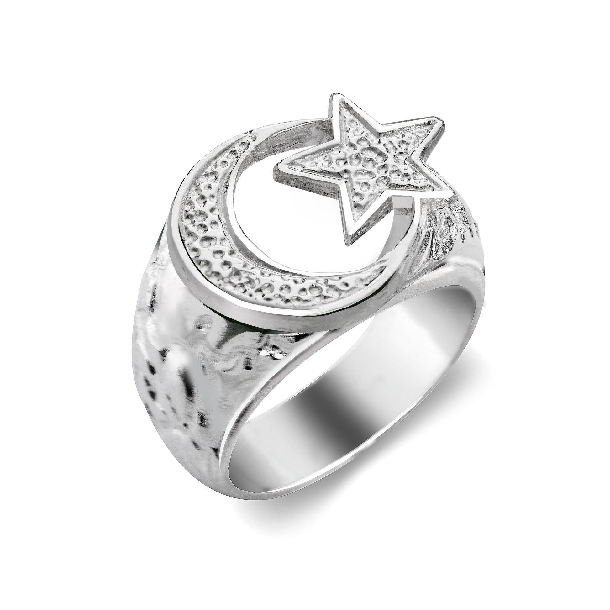 This sterling silver celestial ring is a classic sign of the Muslim faith. Diamond-cut to a dazzling perfection, this is a beautiful ring.