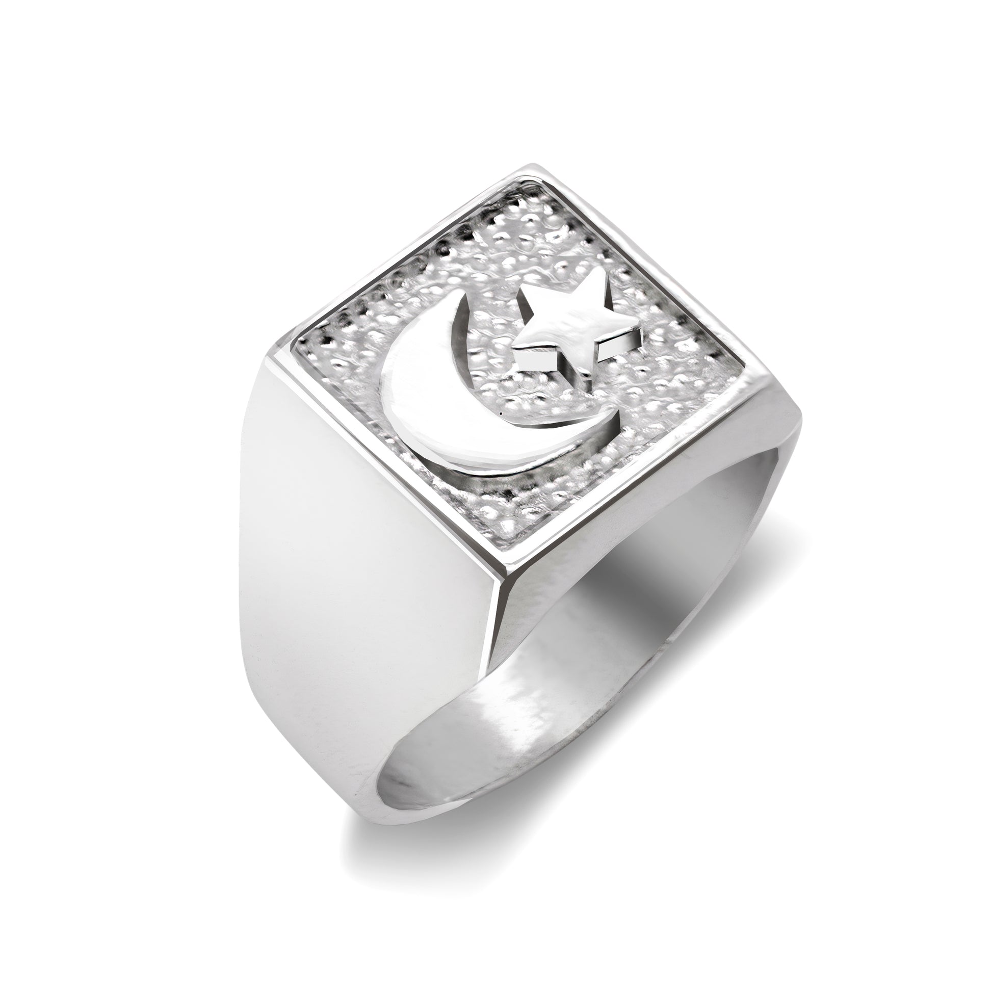 This sterling silver celestial ring is a classic sign of the Muslim faith. Diamond-cut to a dazzling perfection, this is a beautiful ring.