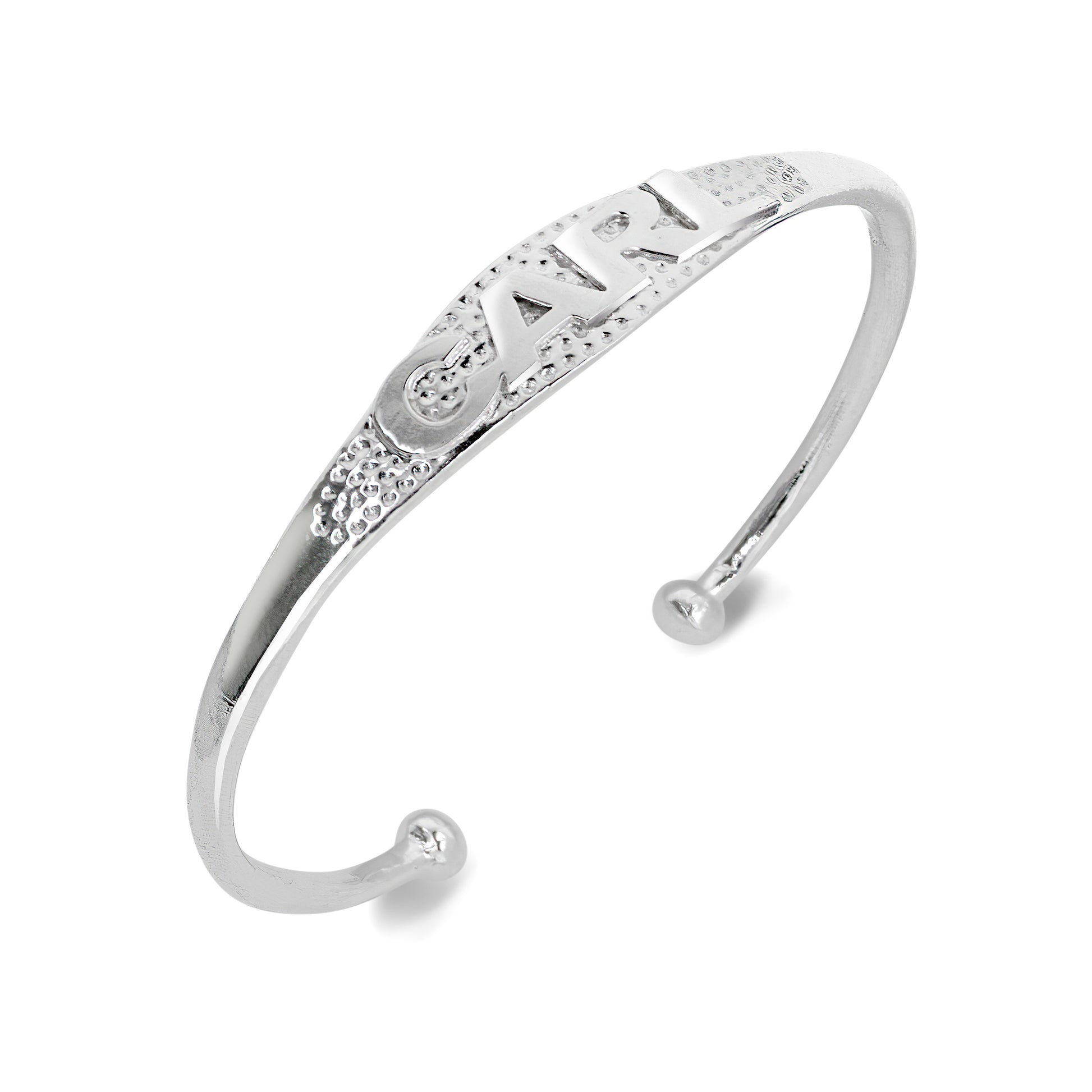 Personalized 925 Sterling Silver Custom Name Plate West Indian Bangle with Ball Ends