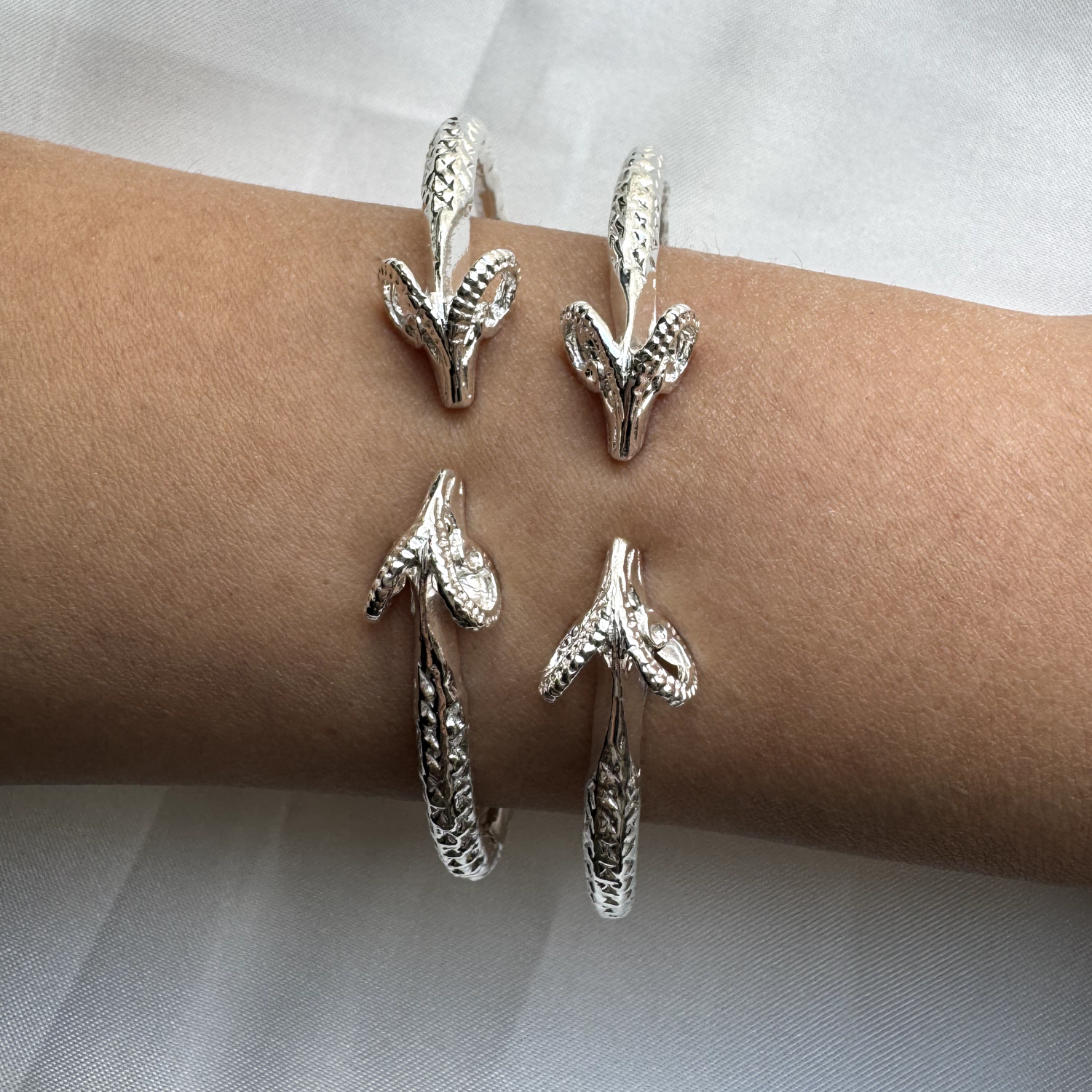 These beautiful pair of sterling silver bangles Ram ends are stunning & is of a great quality. WOW!
