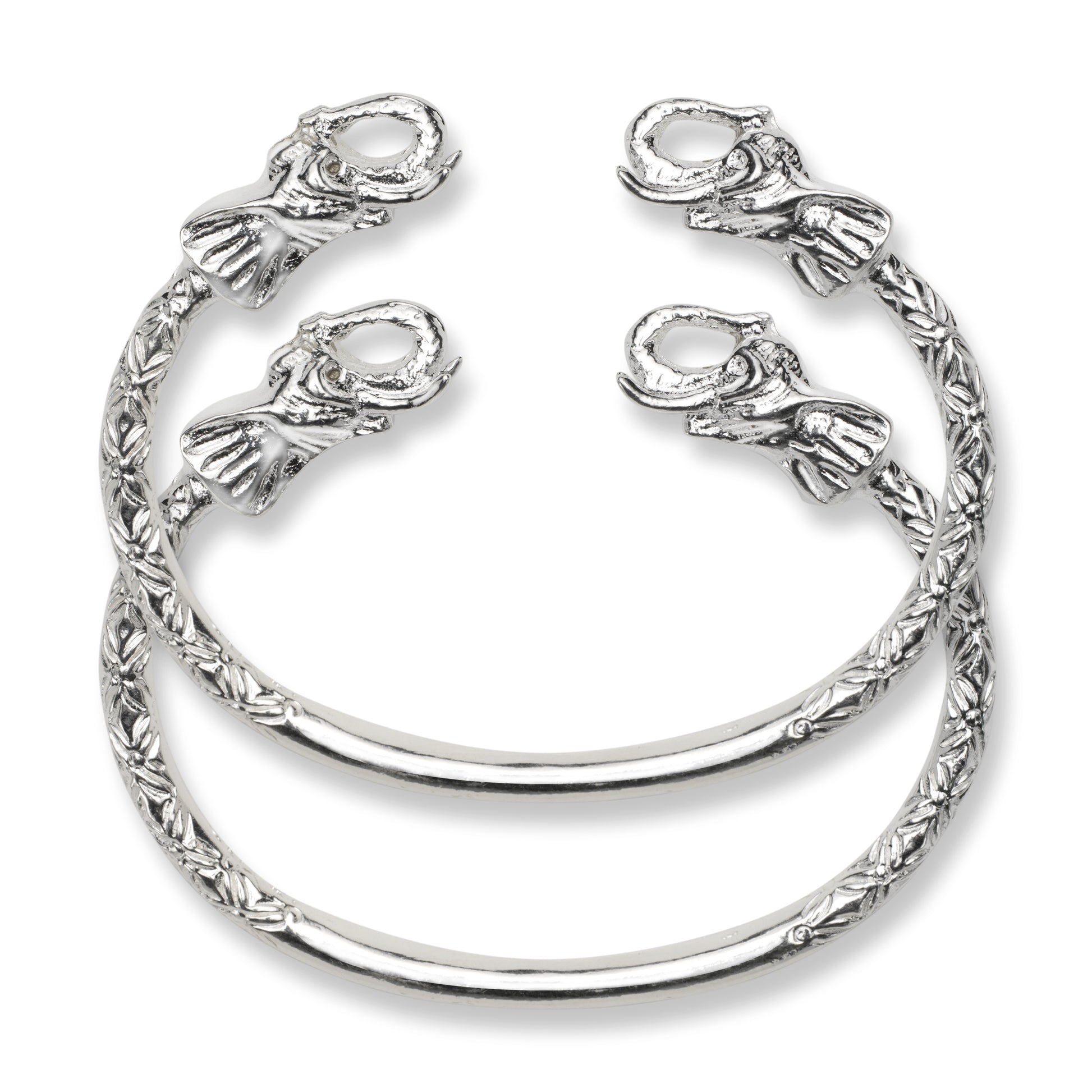 Thick Elephant .925 Sterling Silver West Indian Bangles, 1 pair